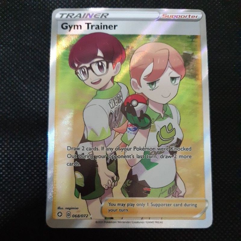 Gym trainer 68/72 full art... $3.15 + $1.61 shipping + $1.61 shipping + $1.61 shipping. Pokémon tcg shining fates gym trainer full art ultra rare 068/072. We sell sealed products, booster boxes, booster packs, singles, sleeves and collectors items for pokemon singles. Free prices and trends for gym trainer full art pokemon cards part of shining fates.